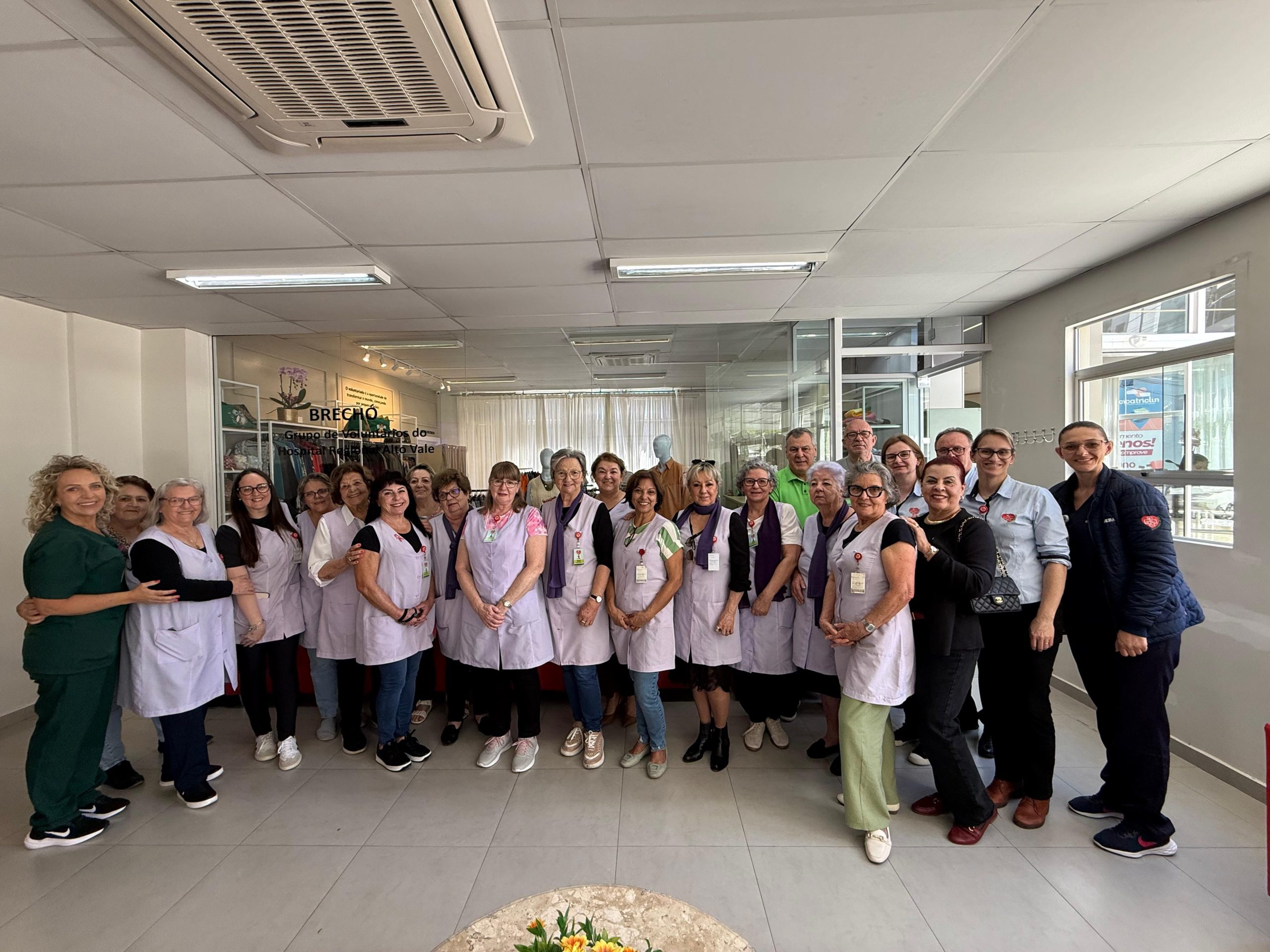 O Hospital Regional Alto Vale inaugurou em outubro o novo espaço do Brechó das Voluntárias. A cerimônia contou com a presença da assistente social Beatriz Sardá, da presidente do grupo de voluntárias Leonor Coninck, do presidente da Fusavi, Claudio Ropelato, além de colaboradores do hospital e integrantes do grupo de voluntárias.